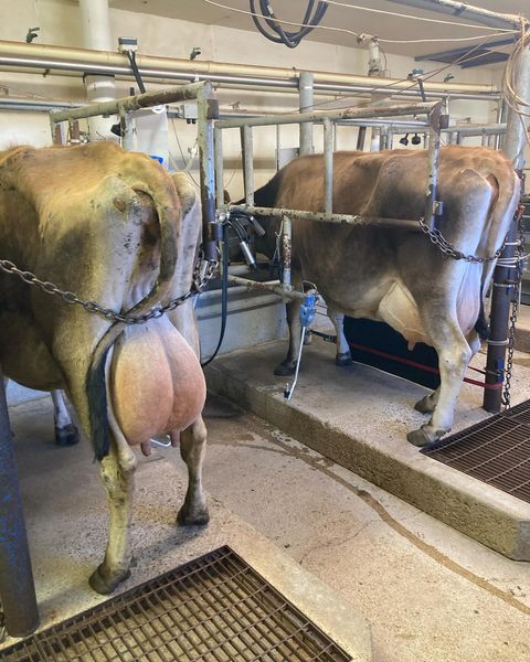 Since 1985, Clover Cove Ranch has been home to a commercial dairy operation. The dairy has taken on several iterations, from a commodity milk producer selling into the conventional market, to a grass-fed butter supplier for a medicinal supplement manufacturer. We milk our Grassfed A2A2 Jerseys once a day, seasonally between the months of April and December. To find out more about our dairy cattle and genetics, visit the Holt Creek Jerseys website.